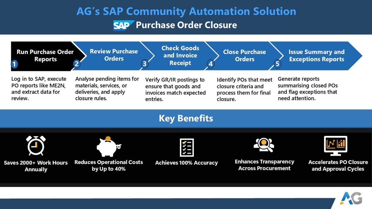 Here at AG, we have developed the PO Closure bot, powered by RPA technology, to automate routine business processes in material management and financial accounting.